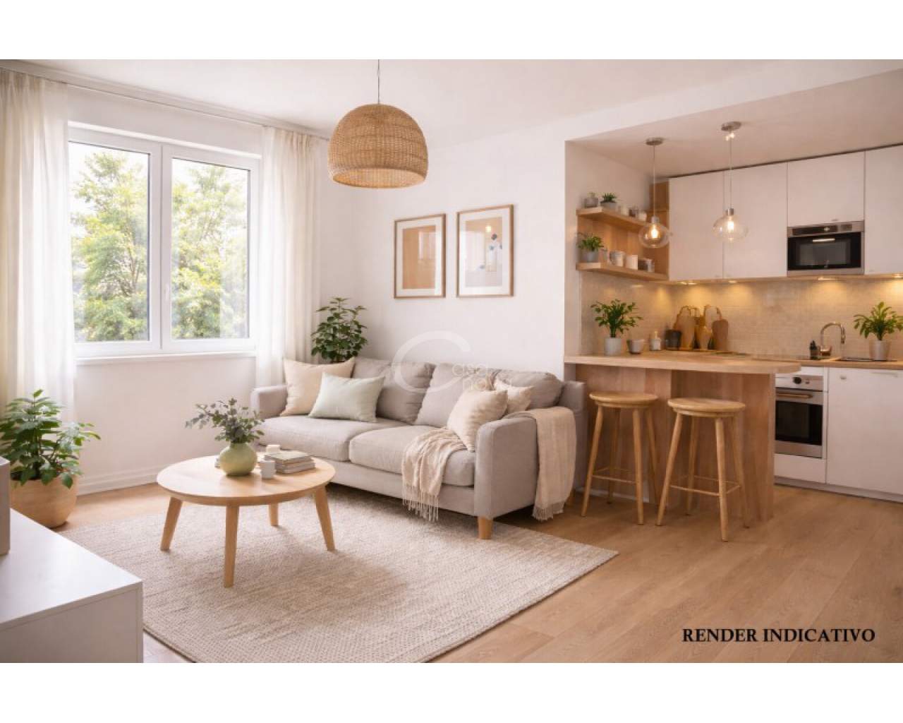 La soluzione è composta da soggiorno con angolo cottura, disimpegno, camera matrimoniale e bagno finestrato con doccia.