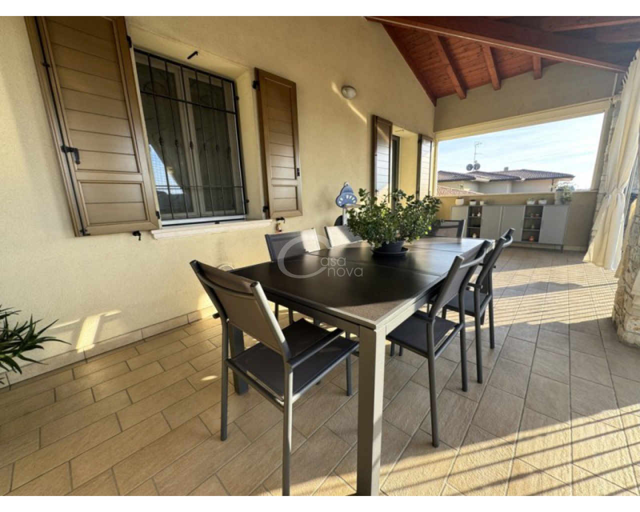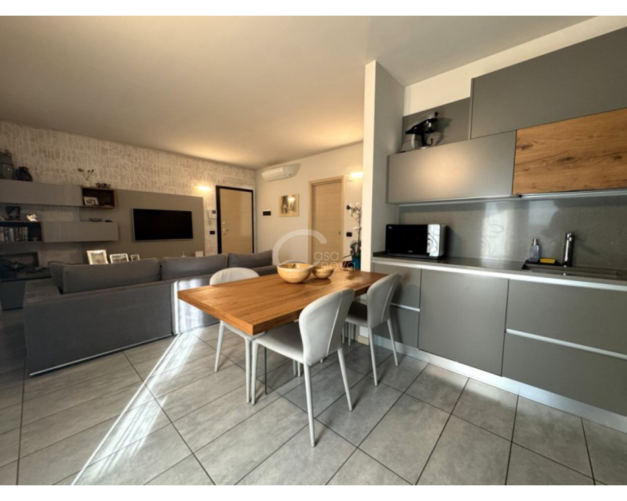 SPLENDIDO TRILOCALE CON TERRAZZA E BOX DOPPIO! Descrizione: Inserito in un contesto residenziale recente, curato e composto da poche unità, proponiamo in vendita un elegante appartamento trilocale situato al primo ed ultimo piano. La soluzione si distingue per gli ambienti luminosi e ben distribuiti ed è così composta: luminoso soggiorno con cucina a vista, moderna e funzionale, che si affaccia direttamente sulla terrazza vivibile, ideale per pranzi all’aperto, momenti di relax o come spazio conviviale. La zona notte è ben separata e si compone di un pratico disimpegno, una camera matrimoniale e una seconda camera, entrambe dotate di accesso diretto al balcone, oltre a un bagno finestrato completo di comodo box doccia. Al piano interrato trovano spazio un ampio box auto doppio e una lavanderia ben organizzata, perfetti per chi cerca comodità e funzionalità aggiuntive.