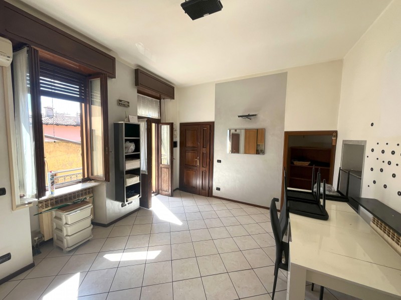 L'immobile è composto da: ampio soggiorno con cucina a vista e accesso al balcone comune ma ad uso esclusivo, camera matrimoniale con balcone, cameretta, bagno finestrato e ripostiglio sottoscala. A completare la proprietà vi è una grande porzione di soffitta esclusiva, posizionata esattamente sopra la zona giorno. La soffitta, finestrata, si presterebbe bene a essere collegata alla zona giorno mediante la realizzazione di una scala interna.