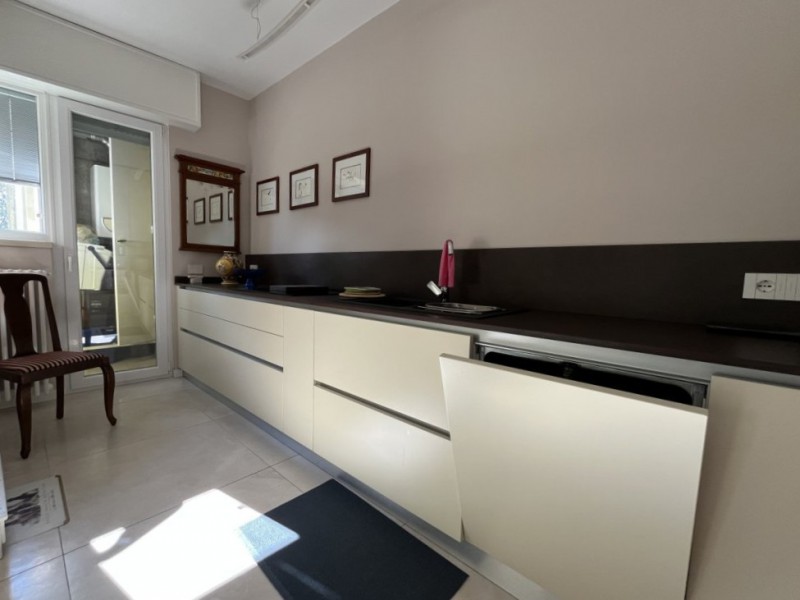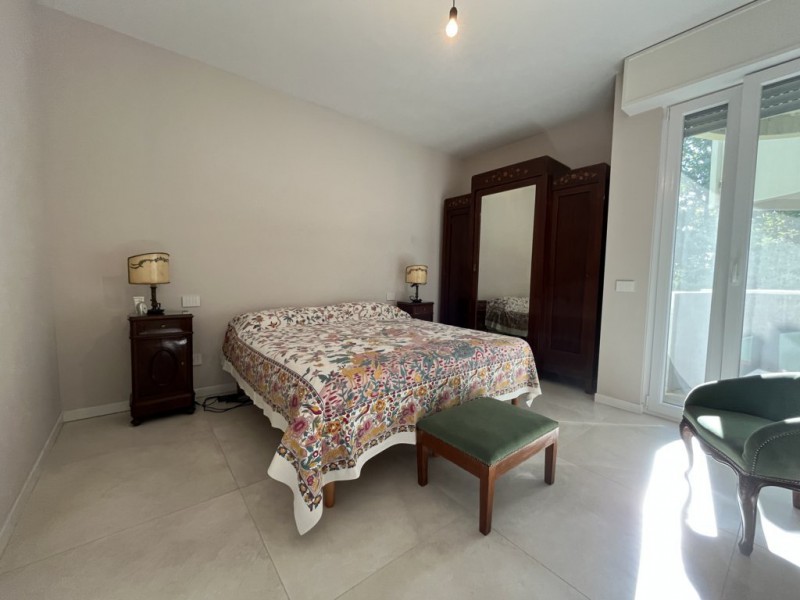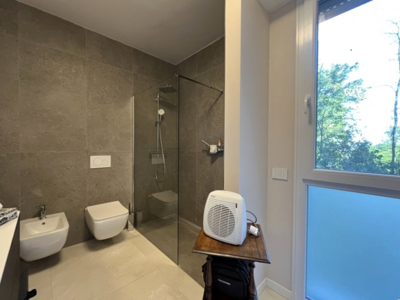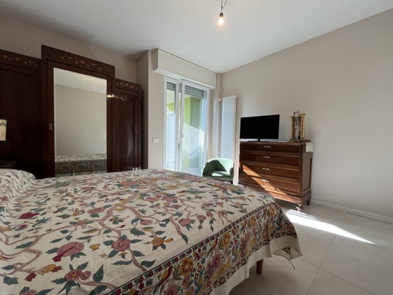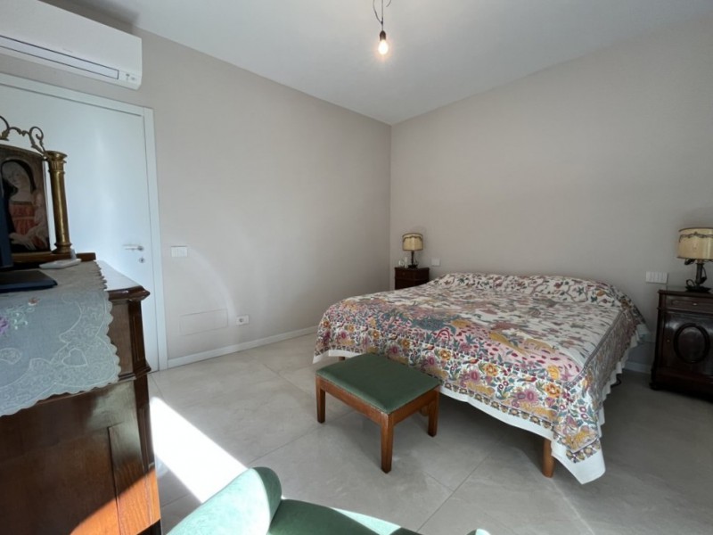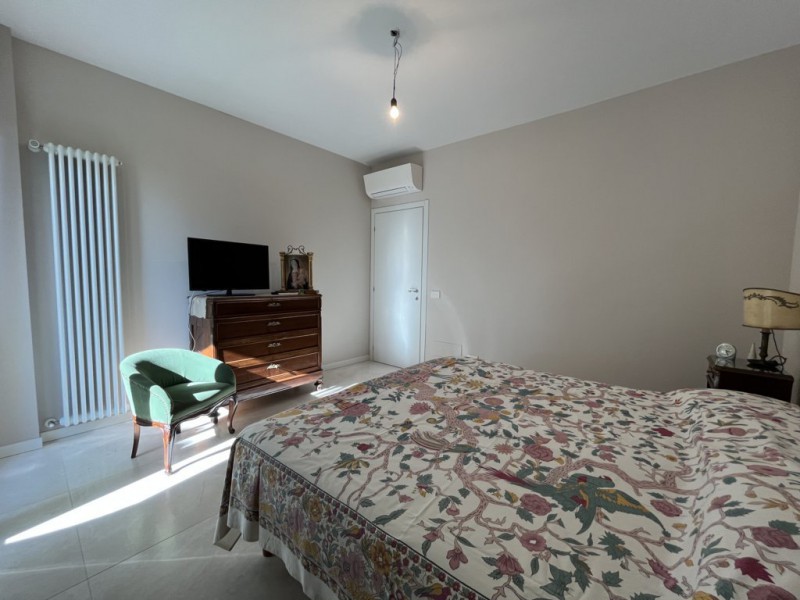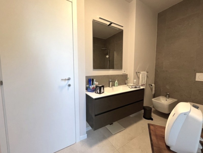 Nella zona notte, un disimpegno con ampia armadiatura conduce alla camera matrimoniale e alla seconda camera, entrambe con accesso diretto al balcone. Troviamo inoltre un secondo ripostiglio predisposto per lavatrice e asciugatrice e un elegante bagno finestrato con doccia.