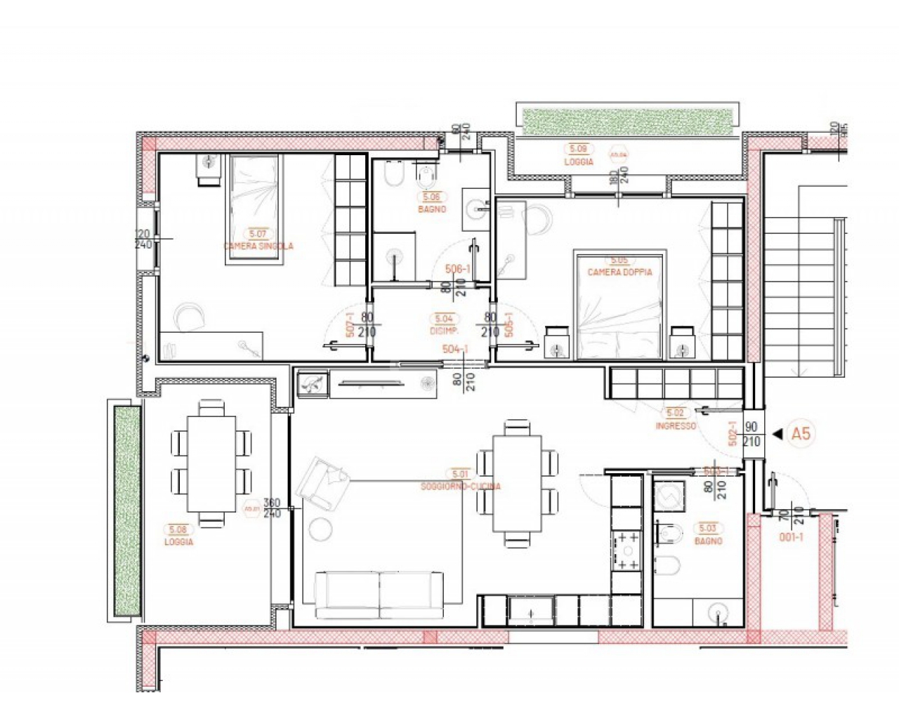 - Piano primo, secondo e terzo con loggia, per godere di spazi aperti anche ai piani superiori.
