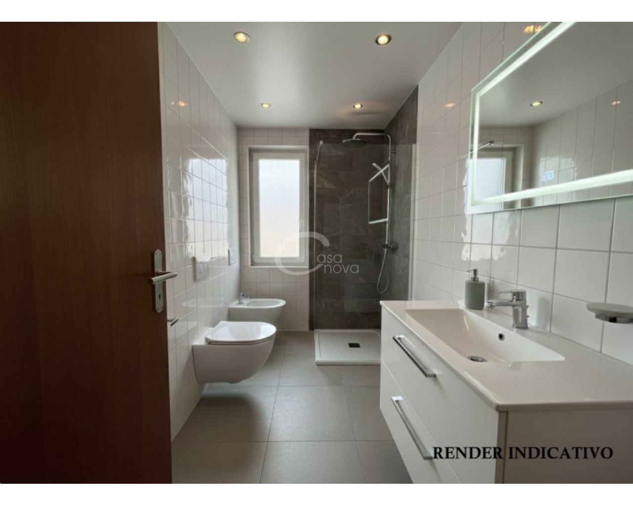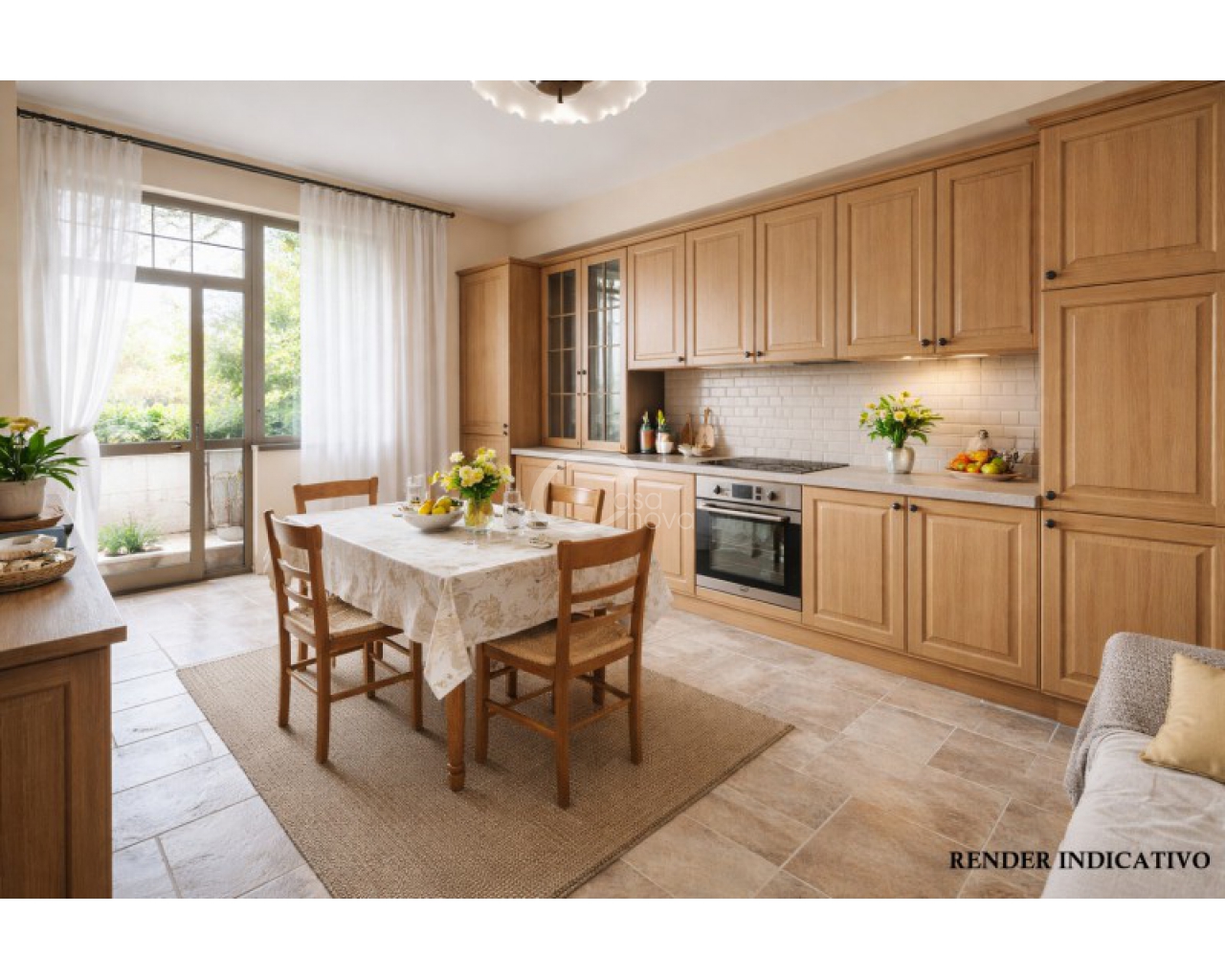 La soluzione, posta al piano terra, è adatta a ogni esigenza abitativa. L’ingresso si apre su un ampio soggiorno luminoso, uno spazio accogliente perfetto per la vita quotidiana e per momenti di convivialità, affiancato da una cucina separata, funzionale e ben organizzata.
