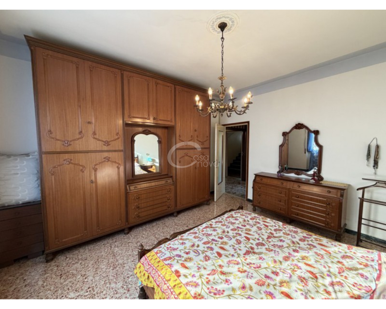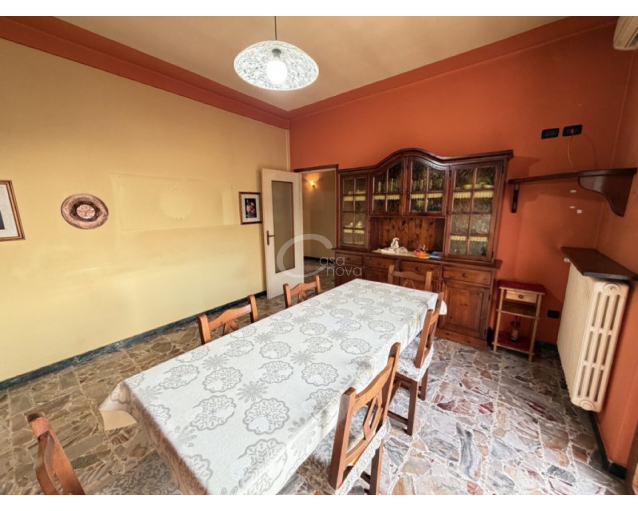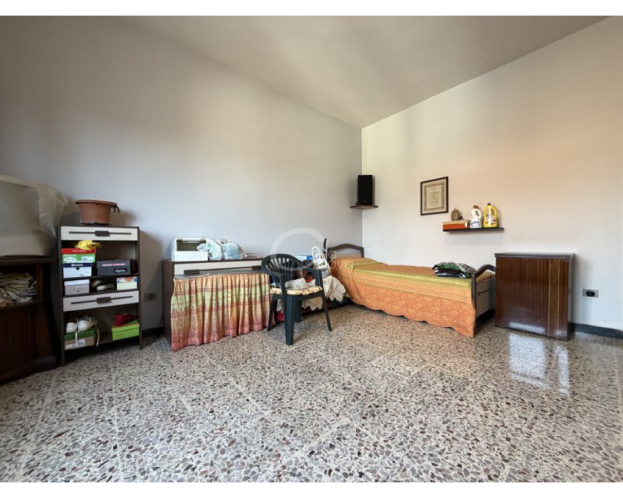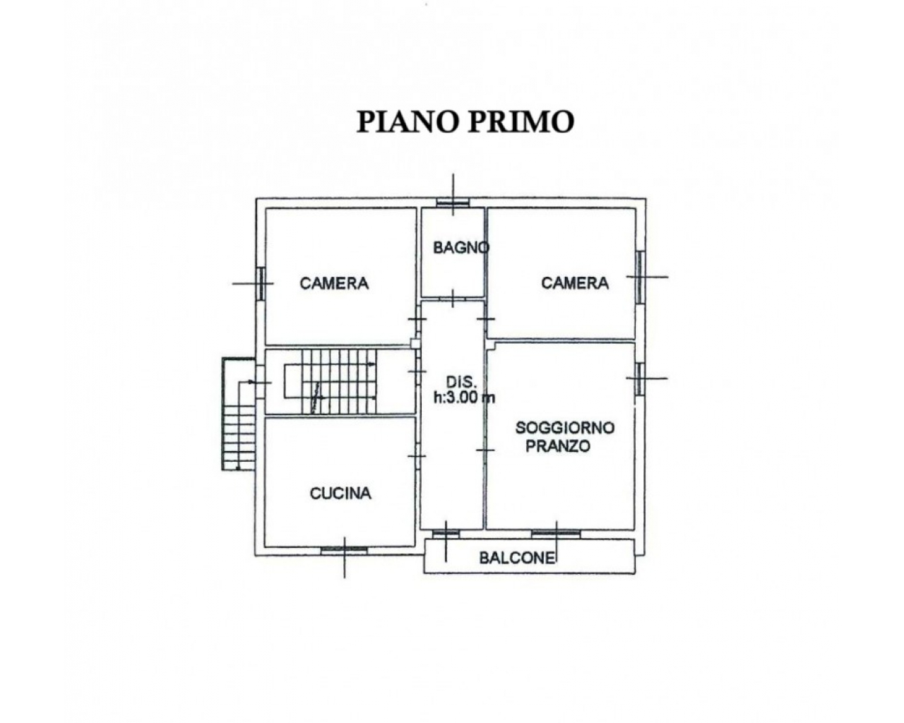 L’abitazione si sviluppa al piano primo ed è accolta da un ampio soggiorno con zona pranzo, con accesso diretto al balcone, perfetto per momenti di relax all’aperto. La cucina è separata e abitabile, anch’essa servita da un secondo balcone, caratteristica che garantisce praticità, luce naturale e una piacevole vivibilità quotidiana. Un comodo disimpegno conduce alla zona notte, composta da una camera matrimoniale, da una seconda camera di generose dimensioni e dal bagno finestrato con doccia.