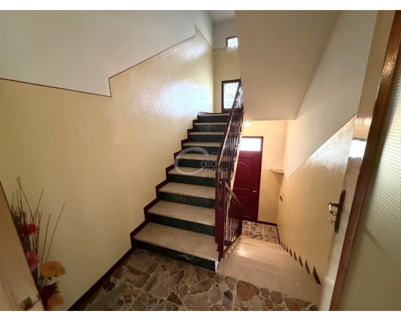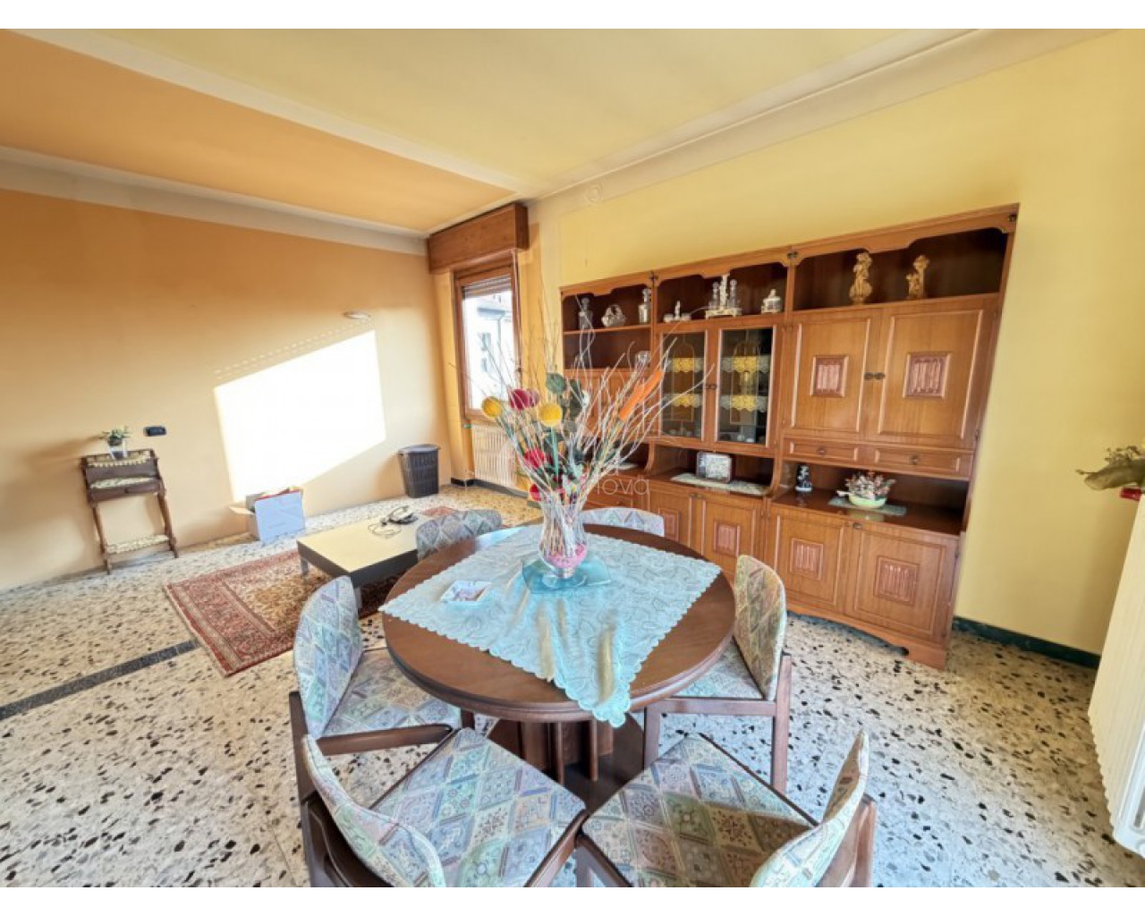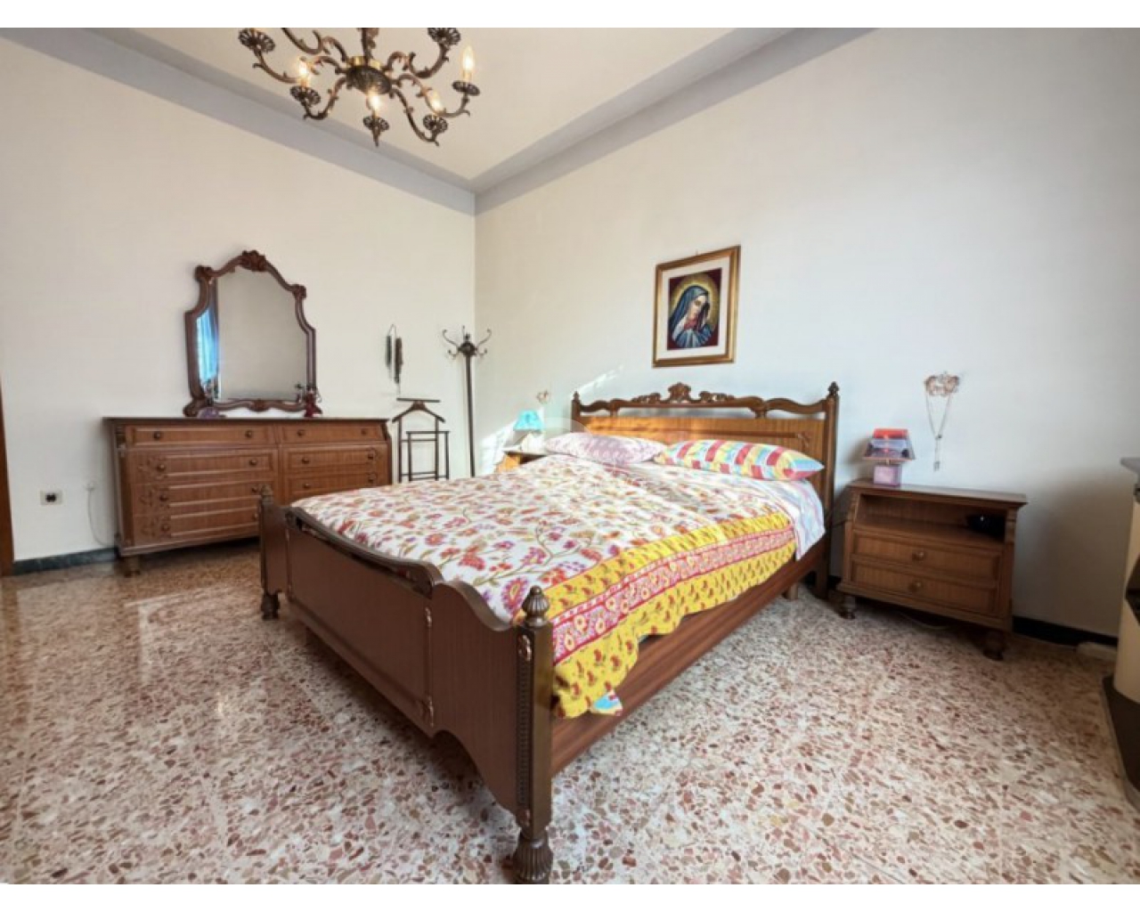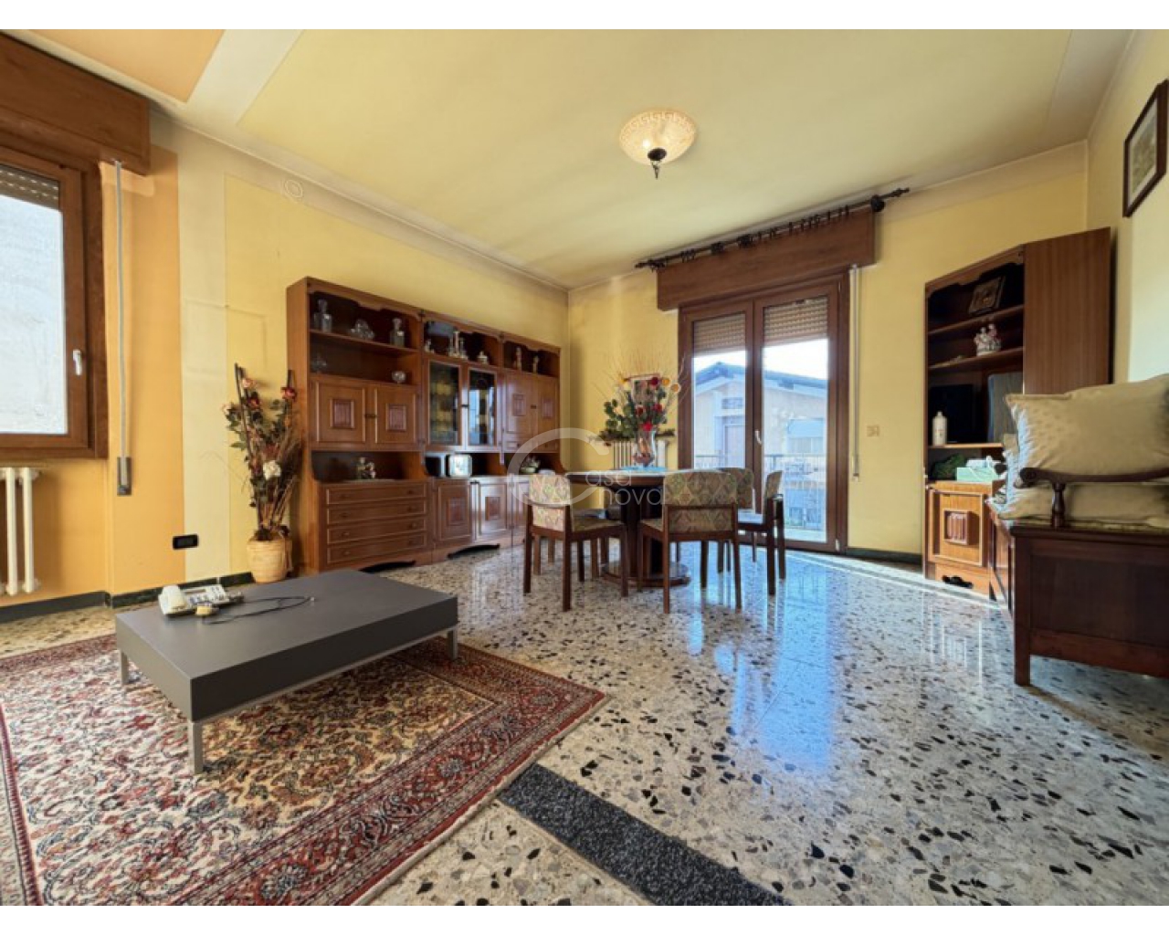 L’abitazione si sviluppa al piano primo ed è accolta da un ampio soggiorno con zona pranzo, con accesso diretto al balcone, perfetto per momenti di relax all’aperto. La cucina è separata e abitabile, anch’essa servita da un secondo balcone, caratteristica che garantisce praticità, luce naturale e una piacevole vivibilità quotidiana. Un comodo disimpegno conduce alla zona notte, composta da una camera matrimoniale, da una seconda camera di generose dimensioni e dal bagno finestrato con doccia.