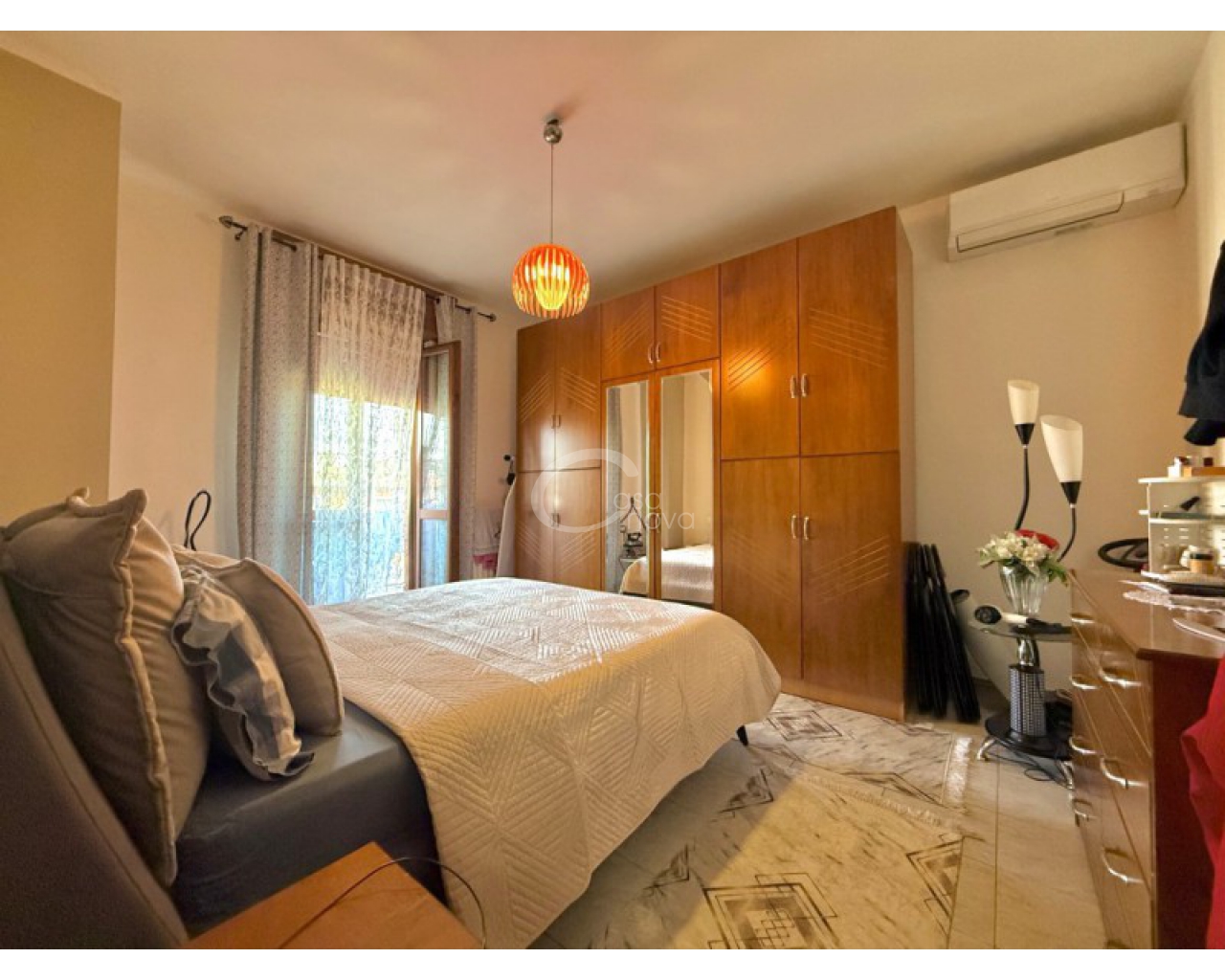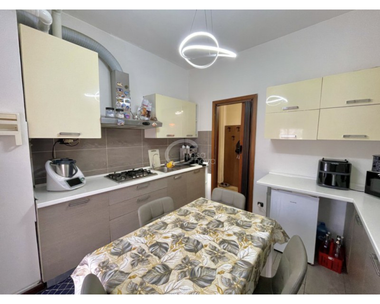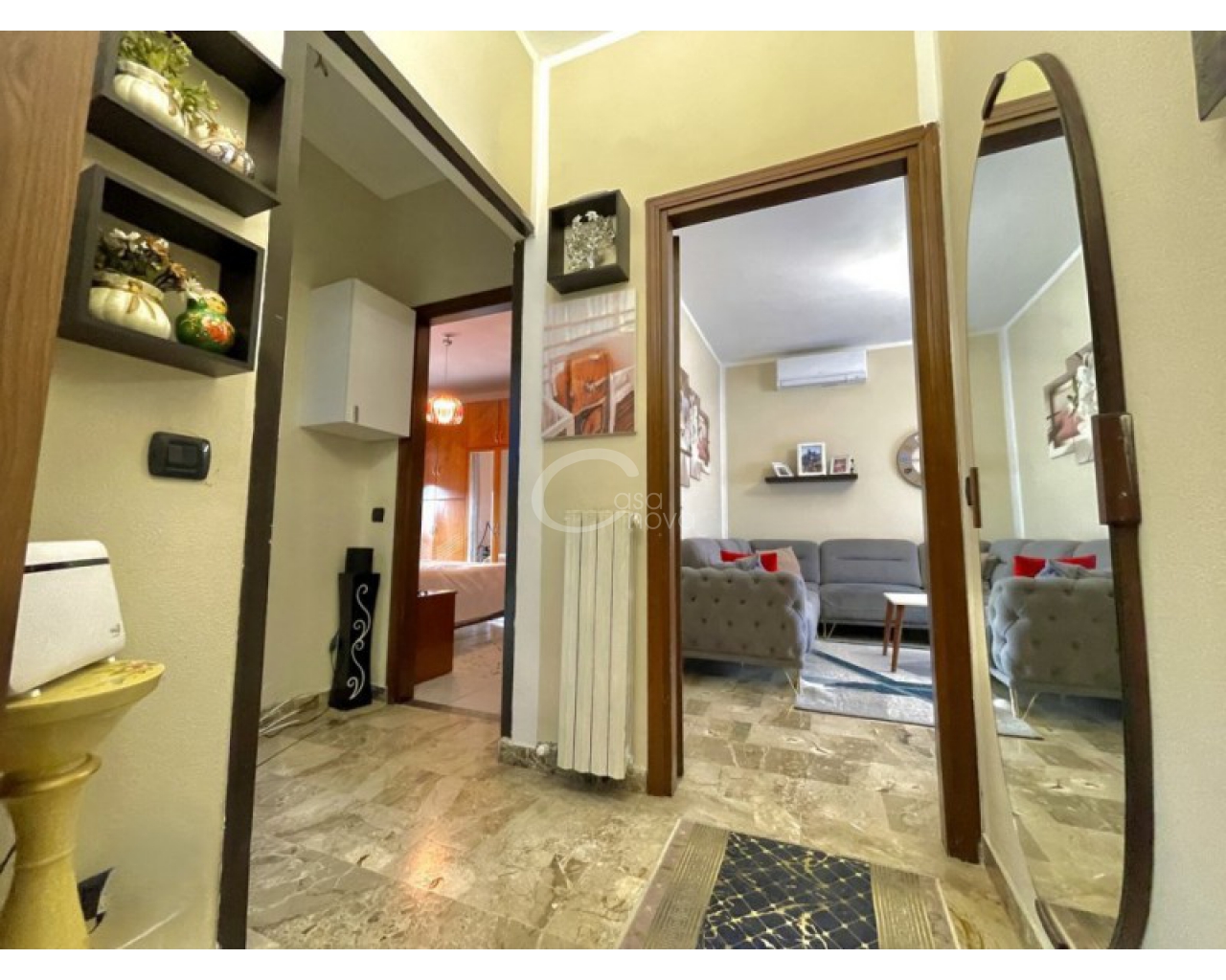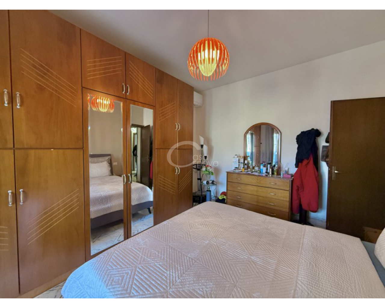 L’ingresso conduce alla zona giorno, dove troviamo un luminoso soggiorno con accesso al balcone, perfetto per godersi momenti di relax all’aperto. La cucina è separata e abitabile, anch’essa con uscita sul balcone, offrendo così spazi distinti e pratici per la vita quotidiana. La zona notte, ben disimpegnata, ospita una camera matrimoniale con balcone, una seconda camera doppia e un bagno finestrato dotato di doccia. Completano la proprietà la cantina e il box auto al piano interrato, oltre a giardino posto al piano terra destinata ad orto, ideale per chi desidera uno spazio verde privato.