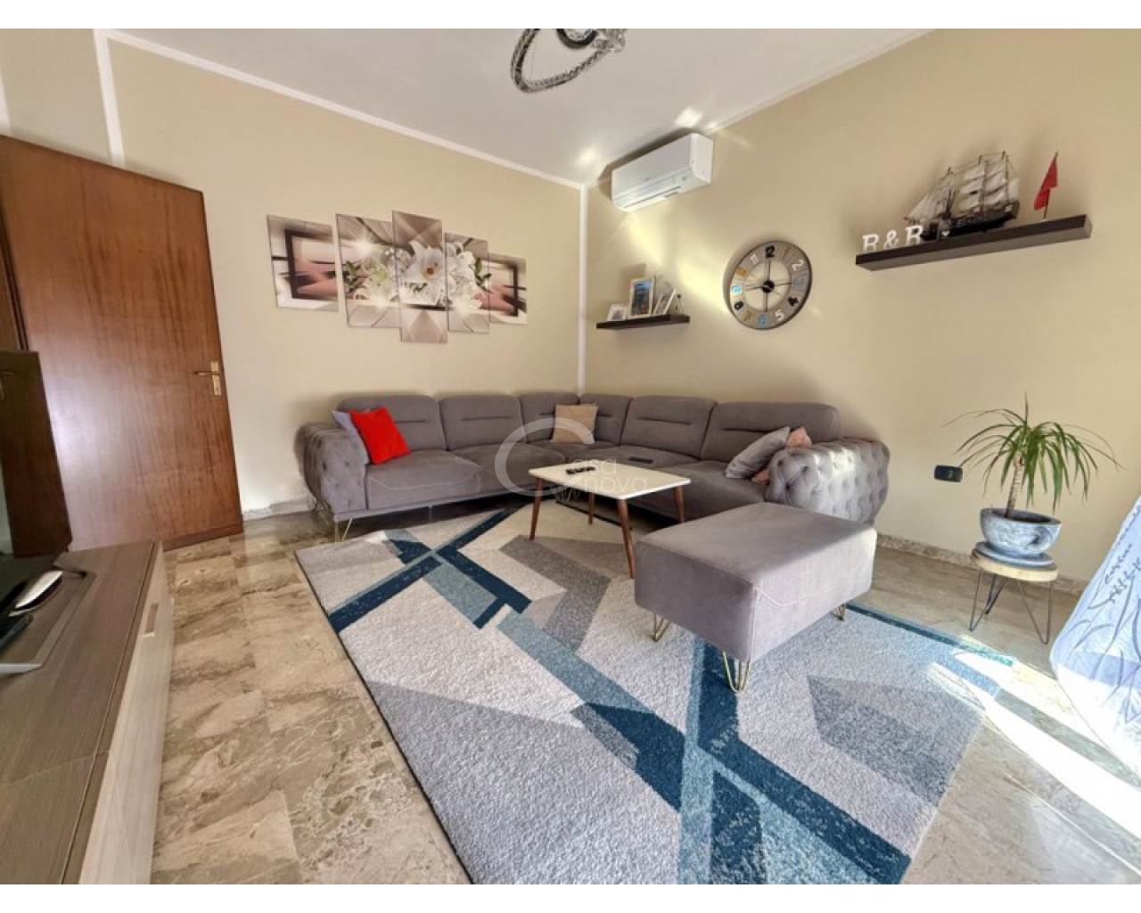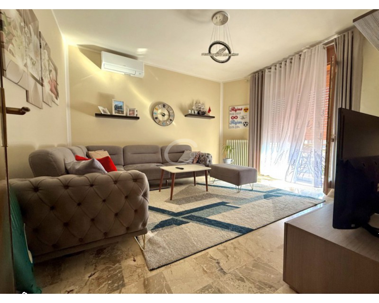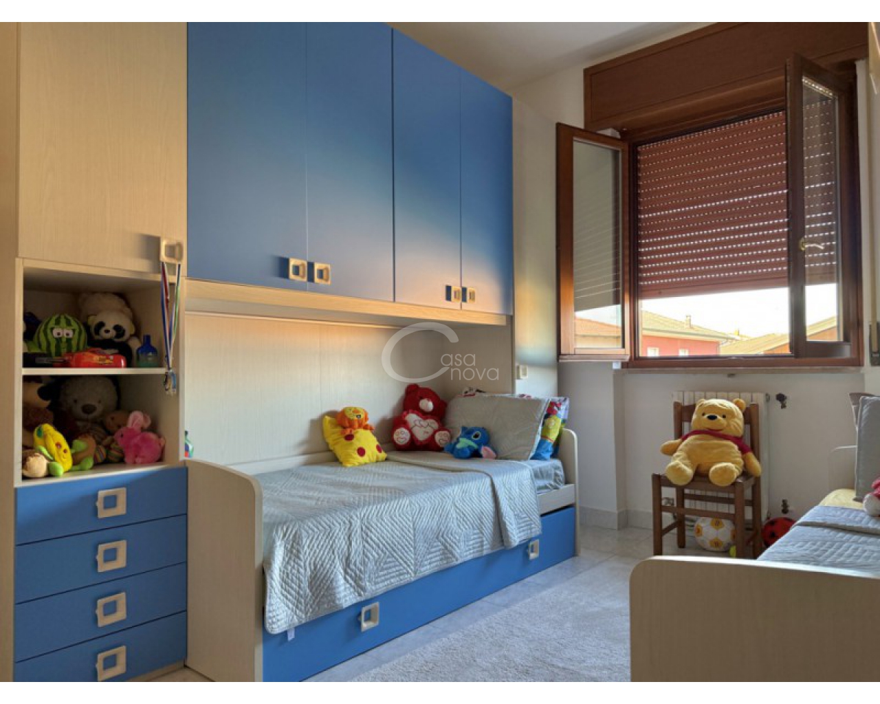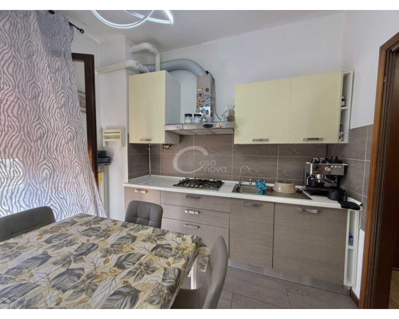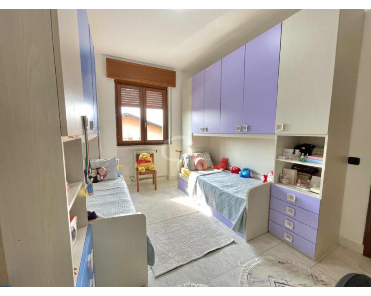 L’ingresso conduce alla zona giorno, dove troviamo un luminoso soggiorno con accesso al balcone, perfetto per godersi momenti di relax all’aperto. La cucina è separata e abitabile, anch’essa con uscita sul balcone, offrendo così spazi distinti e pratici per la vita quotidiana. La zona notte, ben disimpegnata, ospita una camera matrimoniale con balcone, una seconda camera doppia e un bagno finestrato dotato di doccia. Completano la proprietà la cantina e il box auto al piano interrato, oltre a giardino posto al piano terra destinata ad orto, ideale per chi desidera uno spazio verde privato.