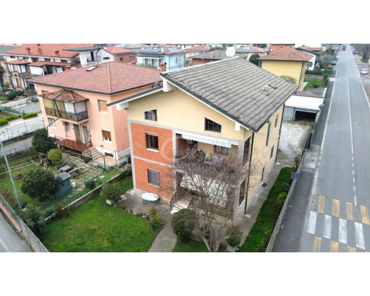 Al piano interrato trovano spazio una cantina, una lavanderia e un locale pluriuso, ambienti versatili che aumentano la funzionalità complessiva dell’abitazione. Il piano terra è impreziosito da un ampio giardino privato, facilmente attrezzabile, perfetto per momenti di relax all’aperto o per chi desidera uno spazio verde esclusivo. Al piano secondo è presente un solaio in comune alle due unità, utile come ulteriore spazio accessorio. Completano la proprietà quattro box auto esterni al piano terra.