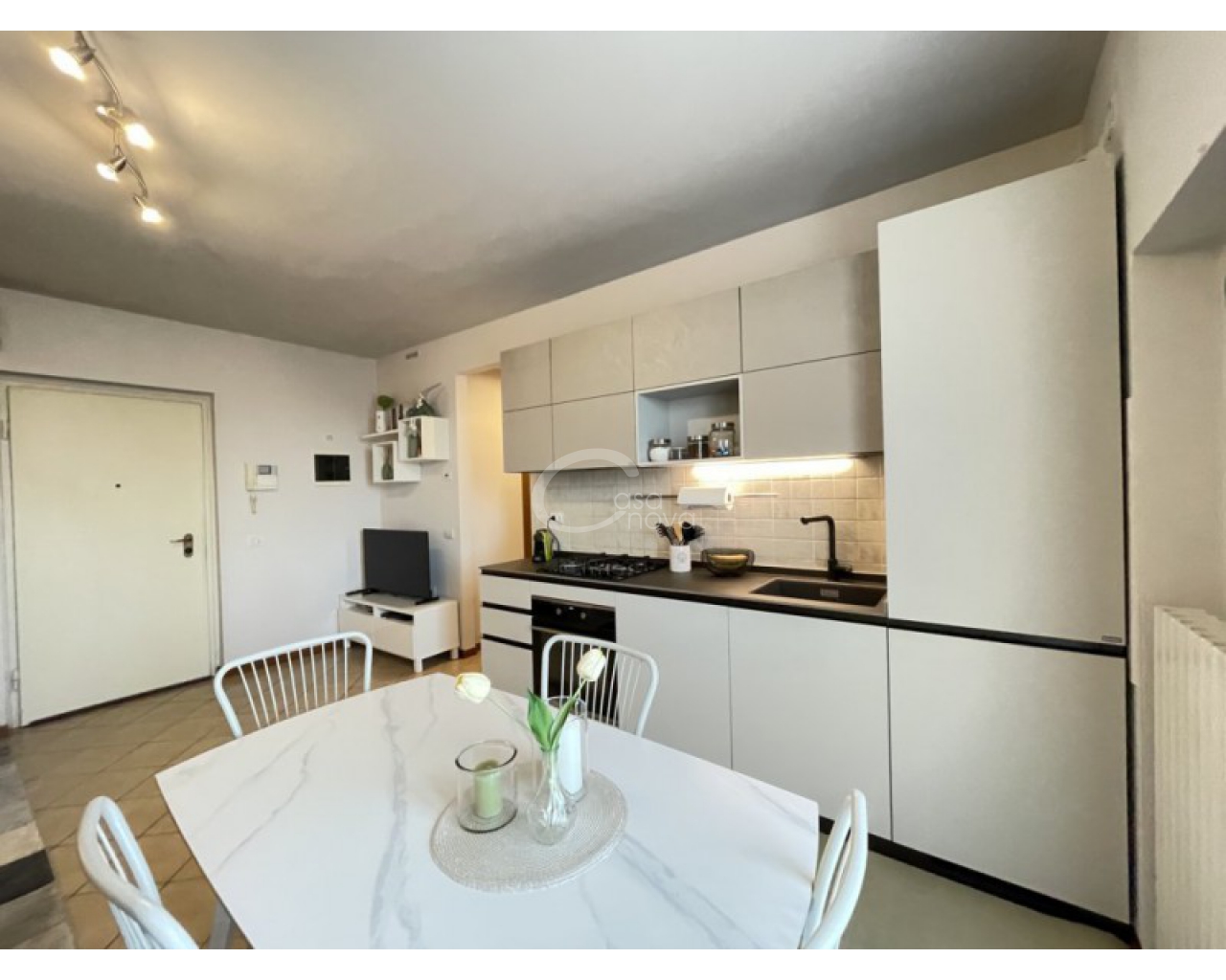 Bilocale luminoso con balcone e box doppio! Descrizione: A Coccaglio, in tranquilla zona residenziale, proponiamo in vendita un appartamento bilocale situato al primo ed ultimo piano, ideale per chi è alla ricerca di comfort, luminosità e praticità. L’ingresso conduce a un ampio e accogliente soggiorno con cucina a vista, uno spazio ben distribuito e particolarmente luminoso, con accesso diretto al balcone. La zona notte è composta da una spaziosa camera matrimoniale, anch’essa con uscita sul balcone, un comodo ripostiglio e un bagno finestrato con doccia. Completa la proprietà il box auto doppio al piano interrato.