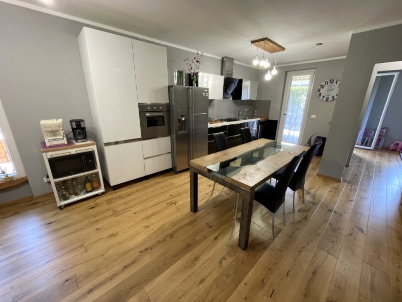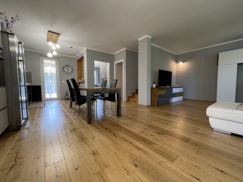 - parquet zona giorno in rovere prefinito su supporto in multistrato;