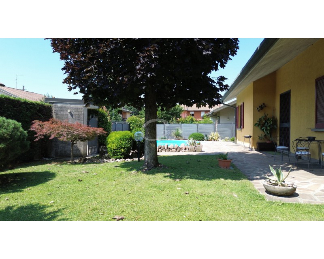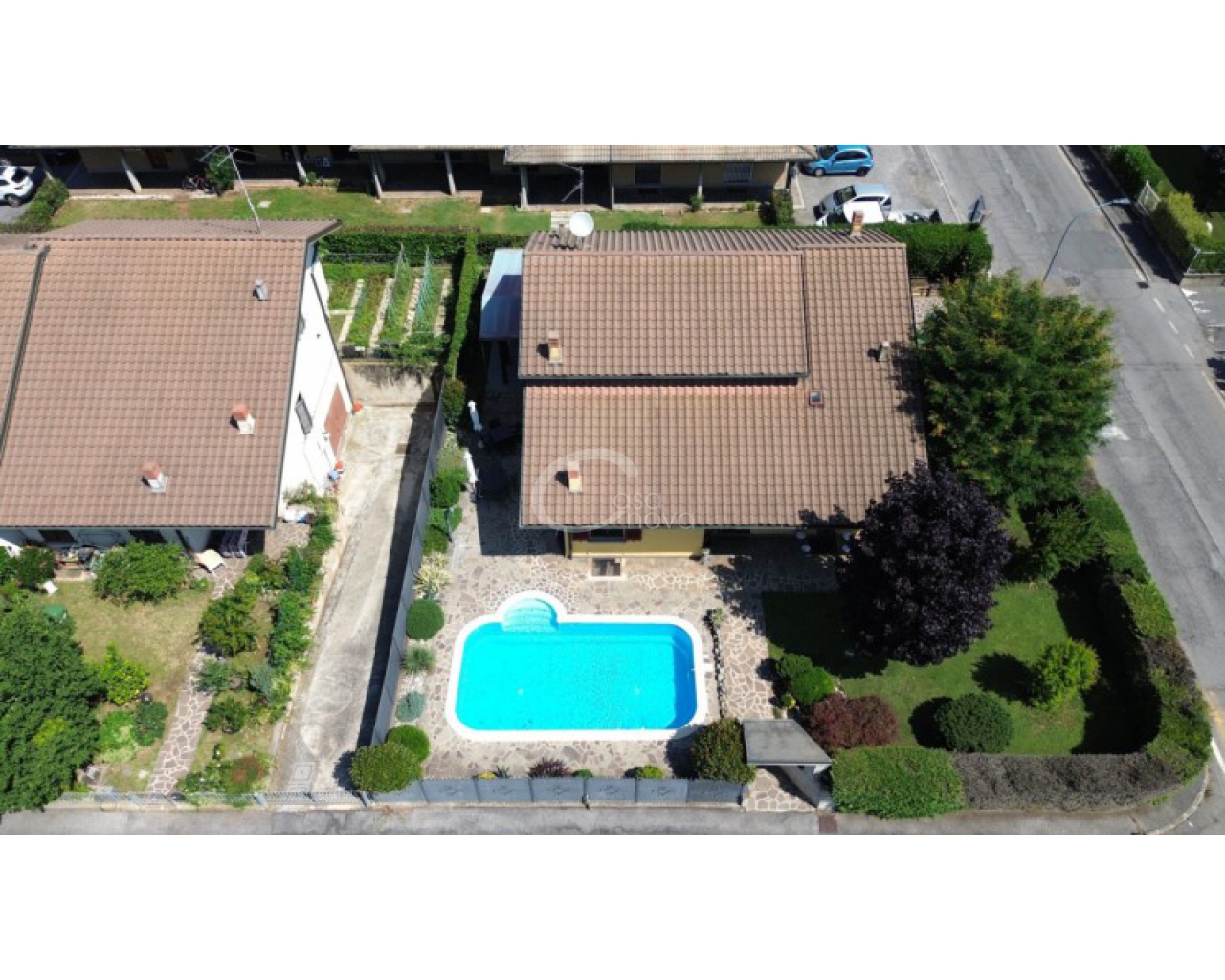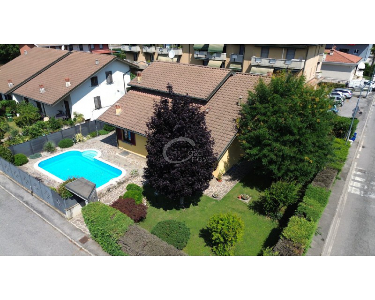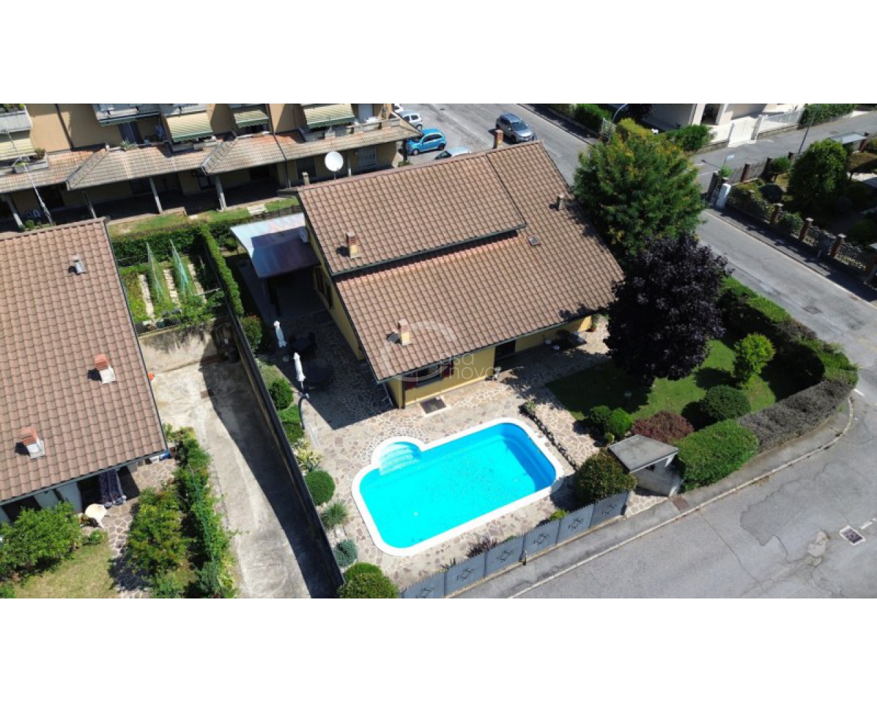 Introvabile villa singola con piscina! Descrizione: In tranquilla zona residenziale, questa villa singola con piscina rappresenta un'opportunità per chi desidera vivere in un contesto riservato senza rinunciare allo stile e al comfort. Circondata da un giardino su quattro lati, la proprietà offre ampi spazi esterni ideali per momenti di relax, cene all’aperto e giornate estive a bordo piscina.