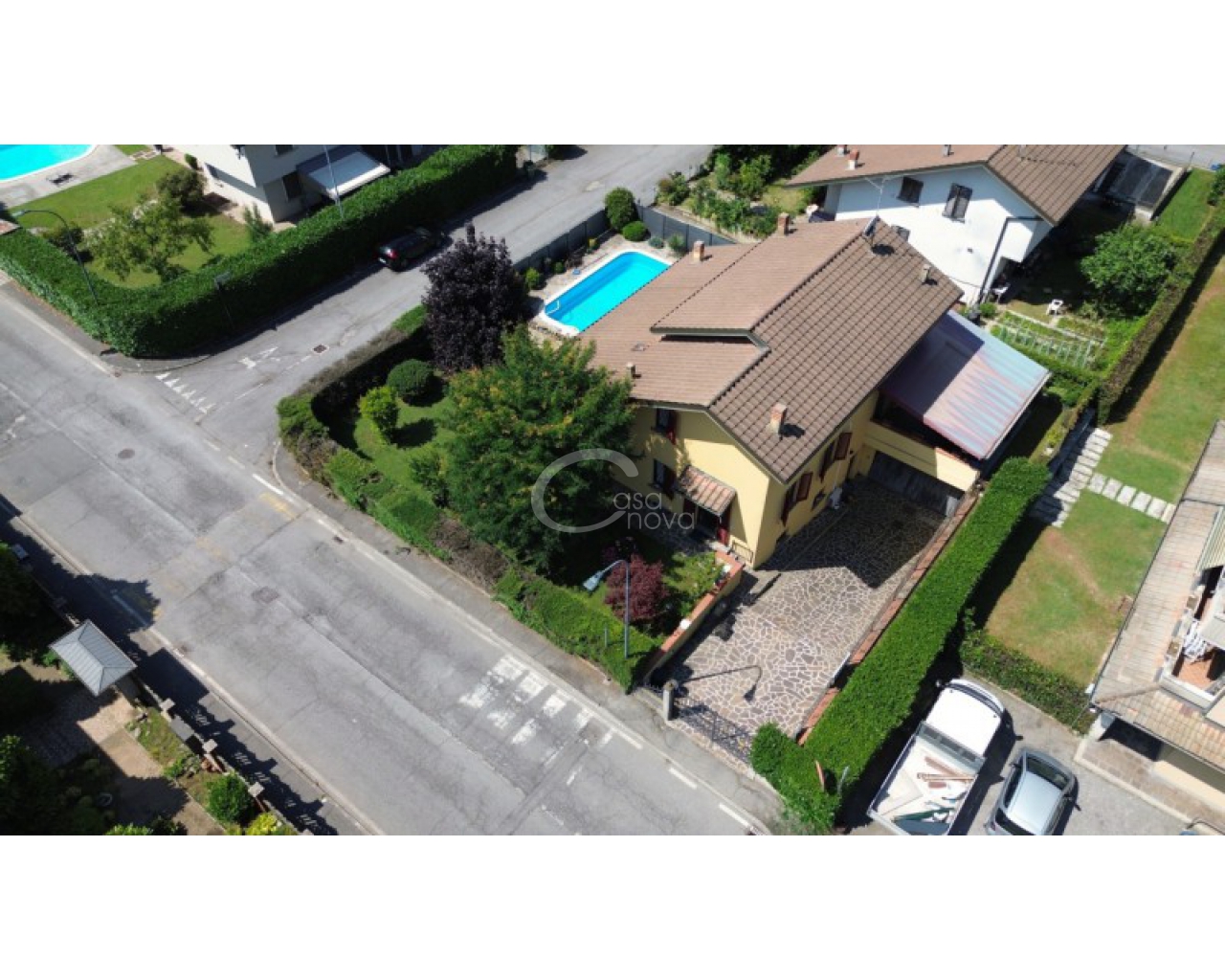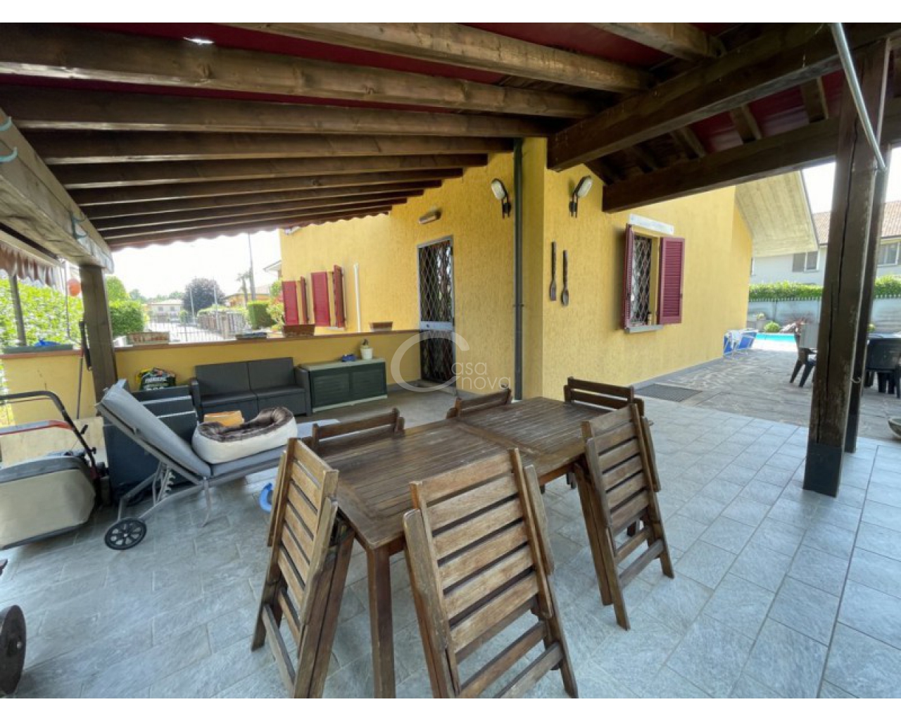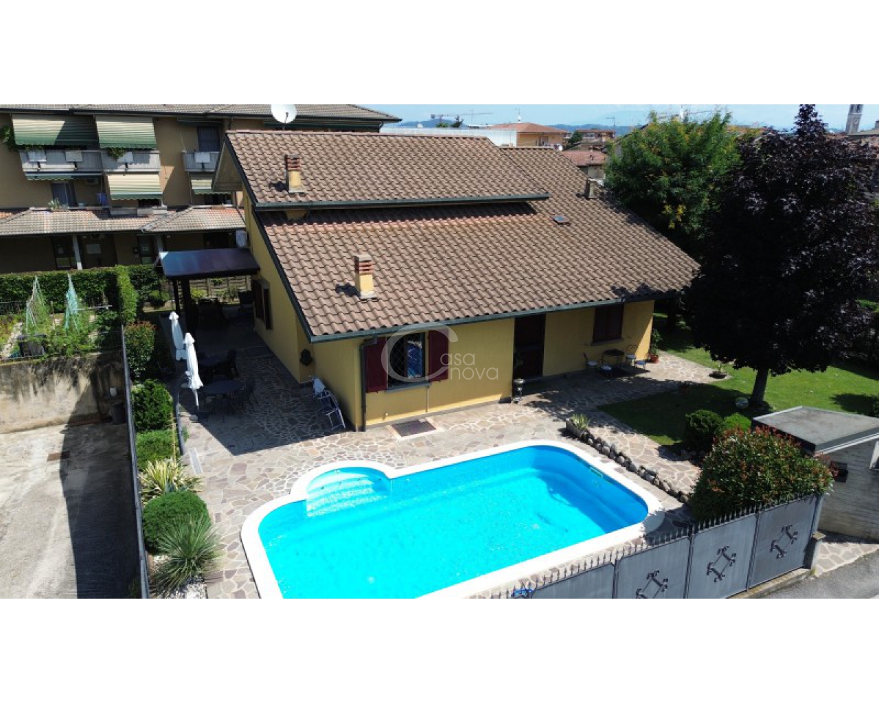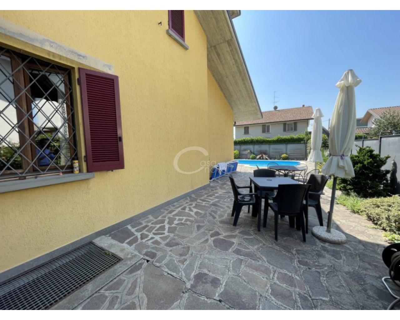 Introvabile villa singola con piscina! Descrizione: In tranquilla zona residenziale, questa villa singola con piscina rappresenta un'opportunità per chi desidera vivere in un contesto riservato senza rinunciare allo stile e al comfort. Circondata da un giardino su quattro lati, la proprietà offre ampi spazi esterni ideali per momenti di relax, cene all’aperto e giornate estive a bordo piscina.