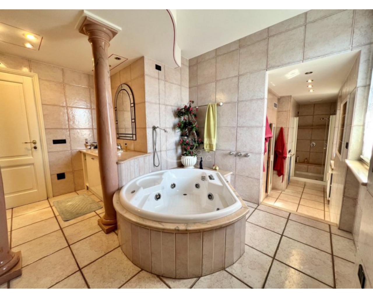 Il piano primo ospita la zona notte, organizzata attorno al ballatoio affacciato sull’ingresso, che dona ulteriore respiro e prestigio agli ambienti. Qui trovano spazio 4 camere ampie e luminose, due di queste con accesso all'ampia terrazza, oltre a 3 locali bagno di generose dimensioni di cui uno dotato di vasca idromassaggio, doccia e sauna , creando un vero spazio dedicato al benessere domestico.