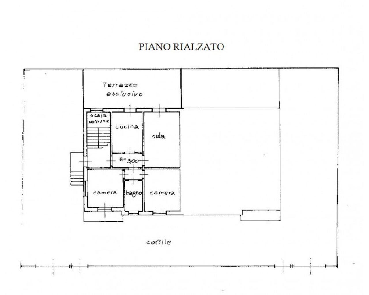 Soluzione ideale per essere mantenuta con questo impianto planimetrico oppure per essere trasformata in una villa unifamiliare.